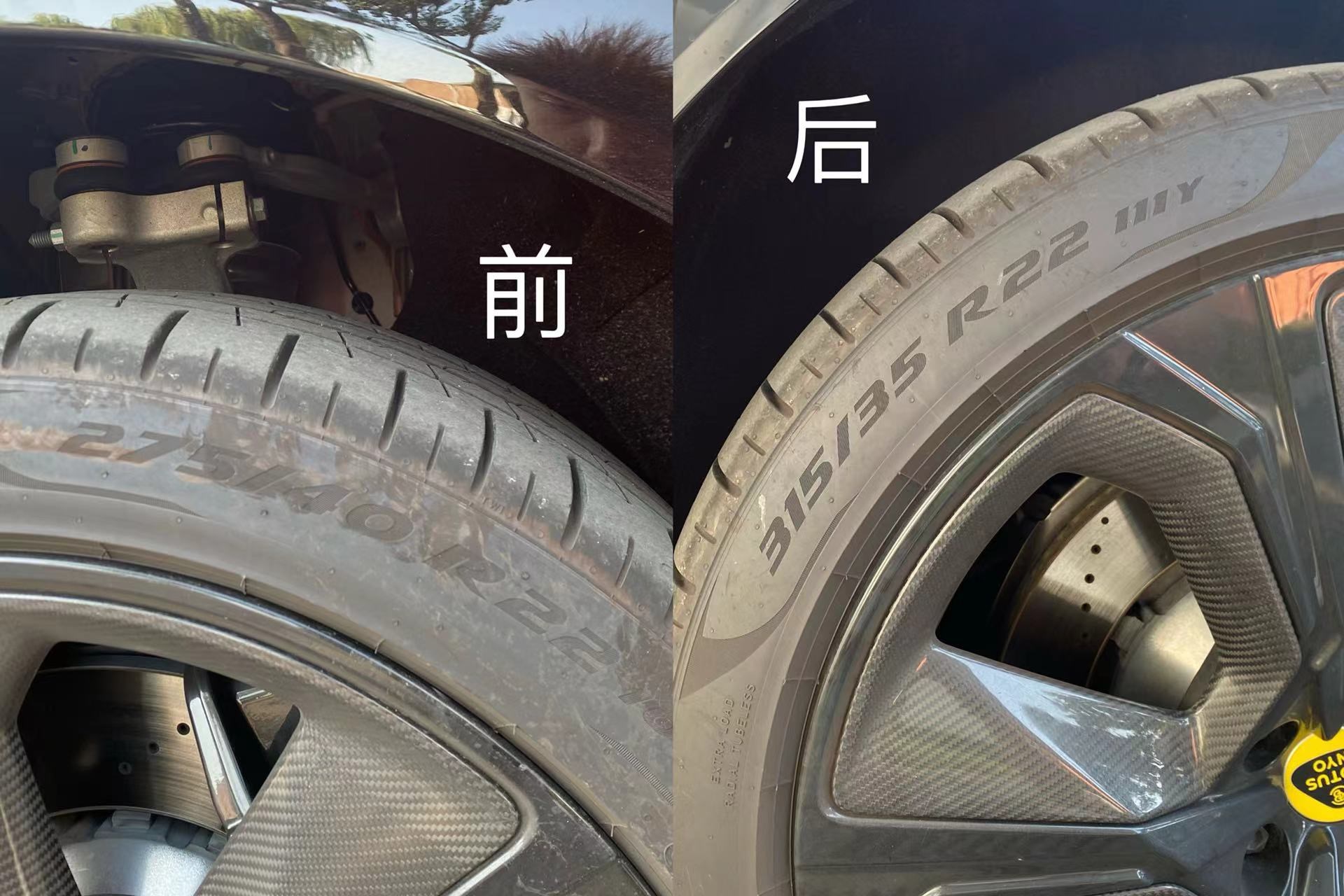 另外,在輪胎部分,路特斯Eletre使用了倍耐力P-Zero corsa的輪胎,這款輪胎可以說在滿足“野性”的同時又很好的兼顧了家用,且前后輪胎規(guī)格也有所不同,前胎為275/40 R22,后胎為315/35 R22,從而讓整車行駛時更加穩(wěn)定。