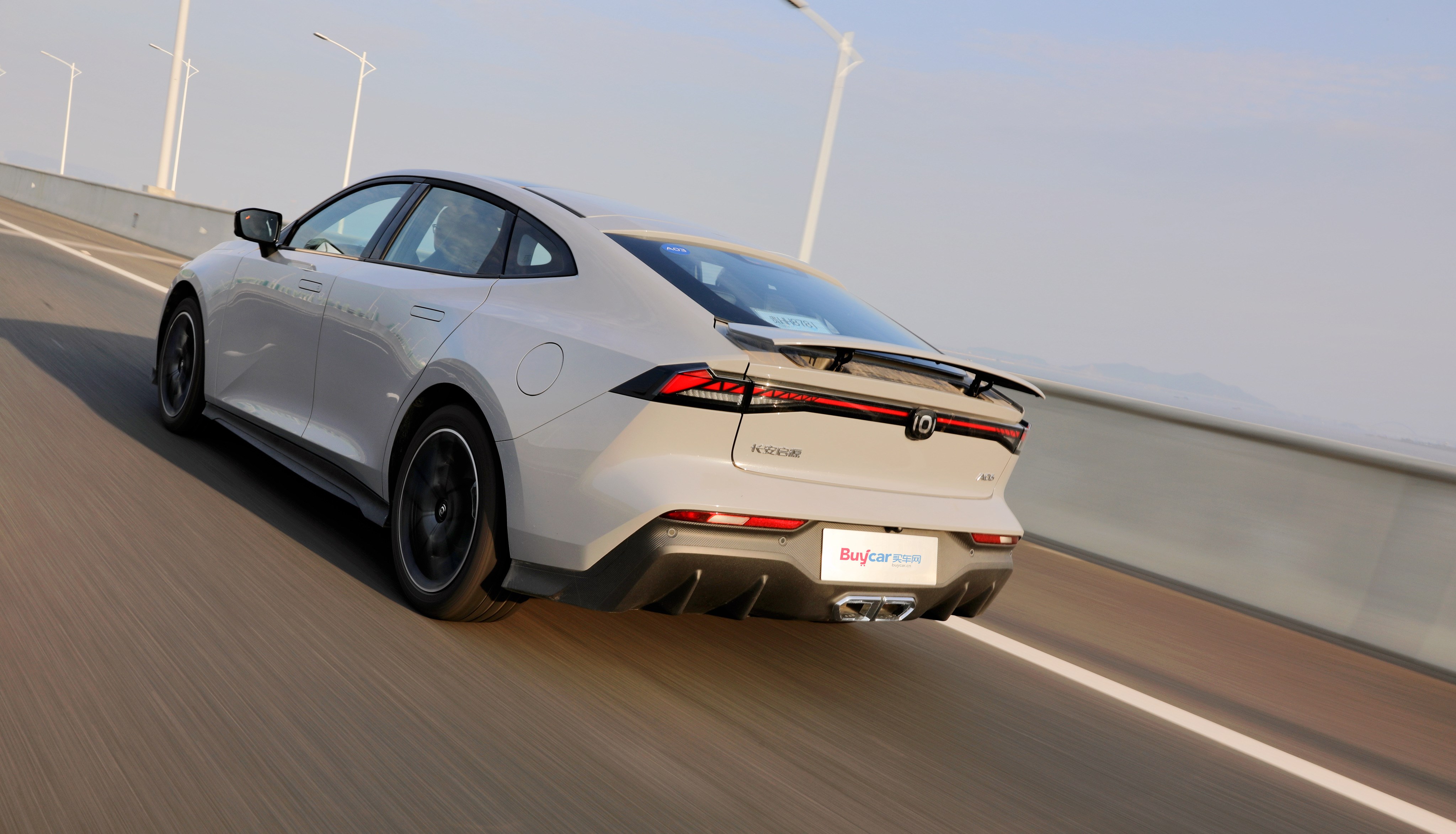 車尾配備貫穿式LED尾燈、空氣擴(kuò)散套件以及中出雙排尾喉,可電動升降的尾翼絕對算是加分項,它不僅能夠幫助啟源A06呈現(xiàn)更戰(zhàn)斗姿態(tài),并且在行駛途中可為車輛提供最高25kg的下壓力,增加高速行駛時的車身穩(wěn)定性。