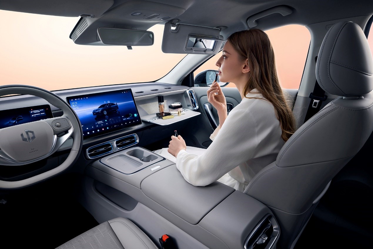 乘坐空間方面,零跑B01擁有同級最高的86%得房率,同時后排靠背為28°黃金角度,并支持6:4比例放倒,提供了優(yōu)越的乘坐體驗。儲物空間方面,零跑B01擁有同級最強的8.5L手套箱,可放下14英寸筆記本電腦。同時,后備箱常規(guī)容積高達460L,并采用上下可調(diào)隔板設(shè)計,魔術(shù)拓展空間近70L,全家出行也能收納從容。細節(jié)貼心儲物更是暗藏26處巧思,從可收納抽紙的紙巾盒到乘客友好的后置扶手,每一處都詮釋了零跑"設(shè)計服務(wù)于人"的追求。