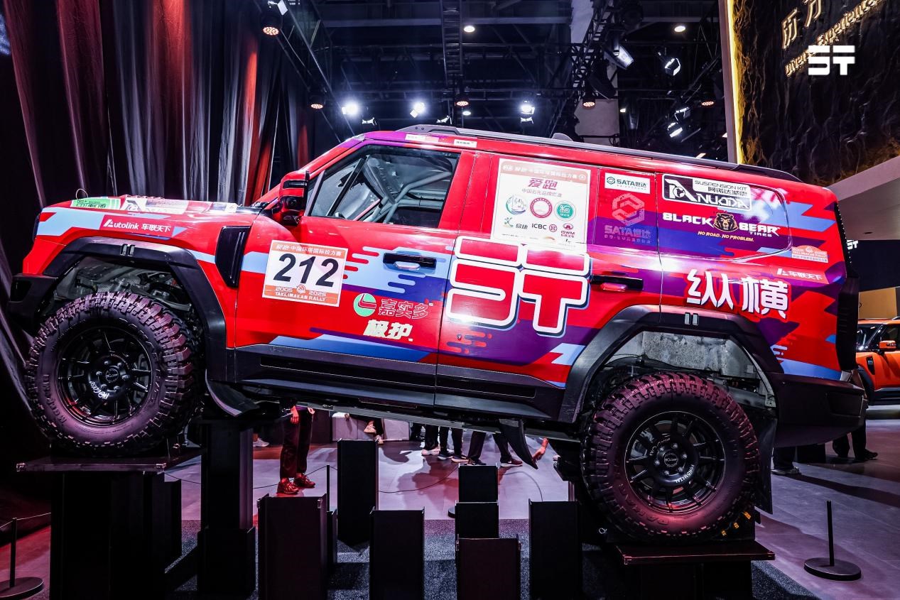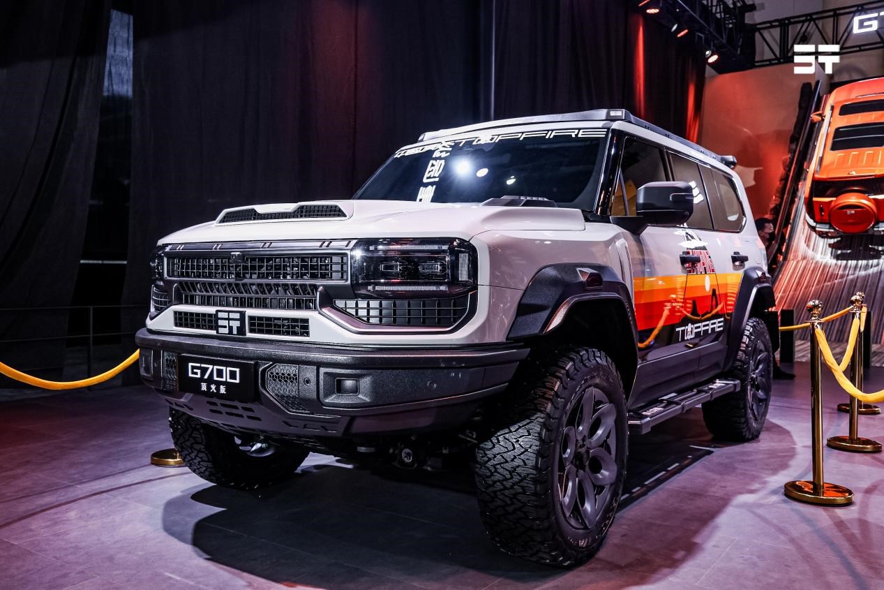 展臺(tái)上,縱橫與國內(nèi)頂級汽車改裝品牌中國頂火車會(huì)聯(lián)手共創(chuàng)的G700頂火版也吸引了觀眾的熱情圍觀。G700頂火版采用戰(zhàn)斗美學(xué)設(shè)計(jì),在保留城市舒適性的基礎(chǔ)上,通過系統(tǒng)性改造賦予其專業(yè)探險(xiǎn)?具屬性,實(shí)現(xiàn)公路巡航與荒野征服的無縫切換。